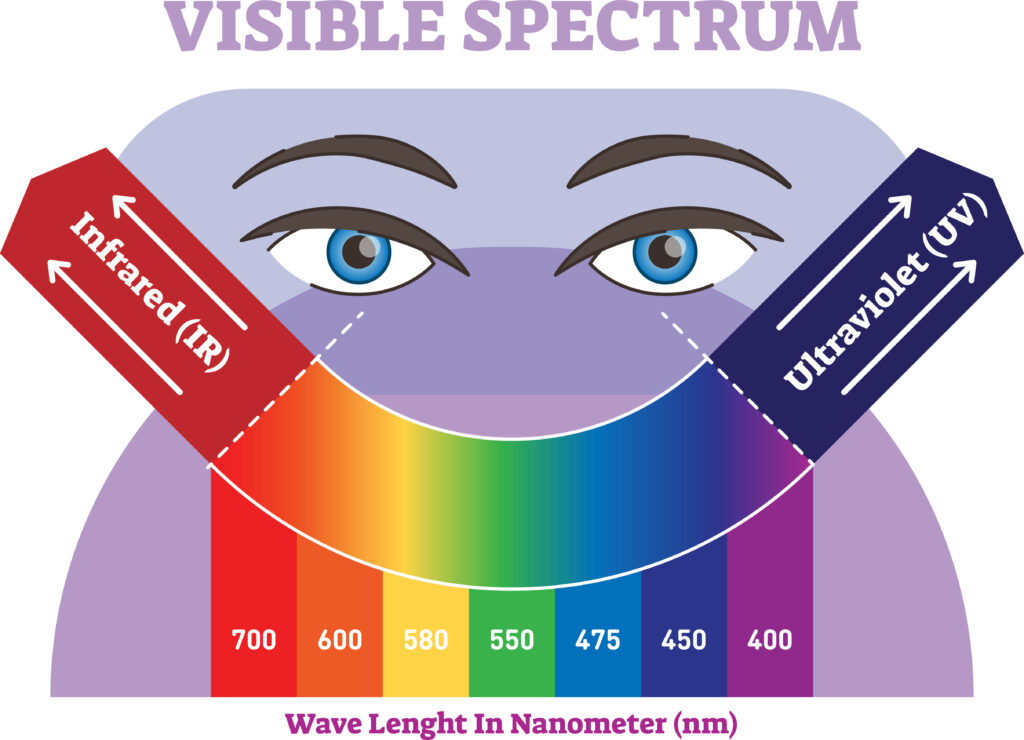 Color is essentially our brain’s visual perception of light based on numerous factors governed by the laws of physics. For simplicity sake, consider the three primary colors: red, blue, and yellow, who each possess a specific light wavelength we will refer to as “color signal”. When primary colors are mixed to create secondary colors like orange or green, the resulting color signal is roughly the average of the original ones interacting and our brain’s resulting perception of it as a different color. So, orange will have a color signal which is roughly the average of yellow and red. This approximation applies to most color combinations, except that is with colors like Purple and Magenta.