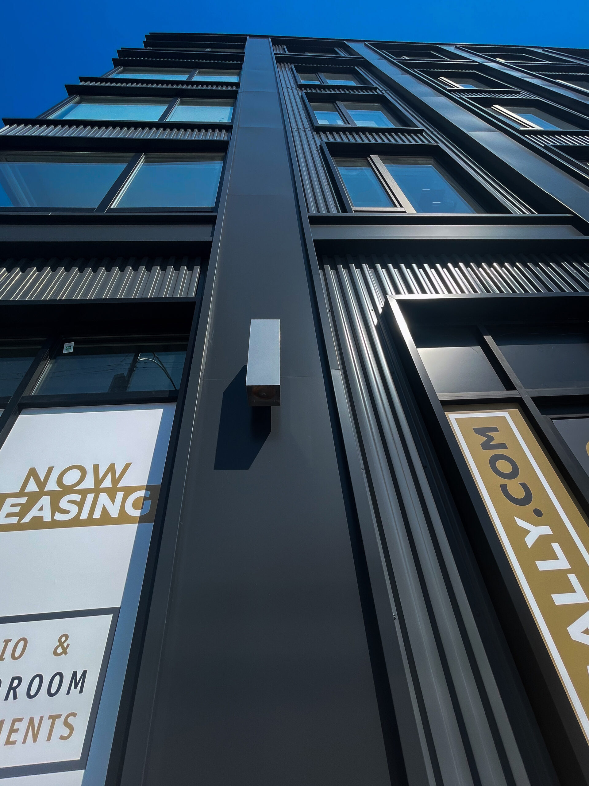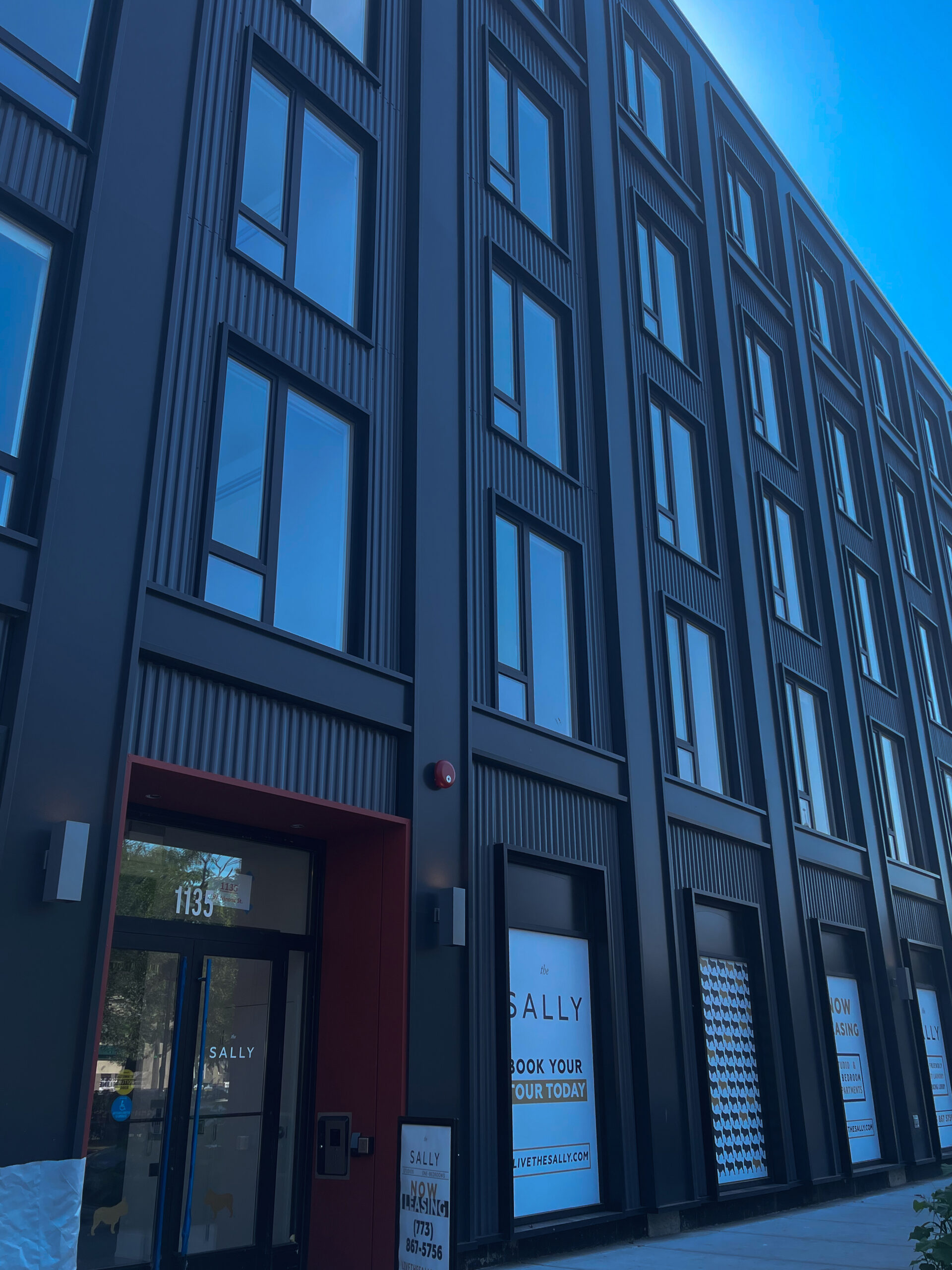 The Draper in Chicago is a prime example of adaptive reuse projects, where an existing structure is recycled and repurposed. Phase two of the expansive project was recently completed with the opening of “The Sally”, a 180 unit multi-family residential building featuring floor to ceiling windows and multiple wall cladding materials. Over 22,000 square feet of Alfrex FR MCM graces the façade in our standard Charcoal paint finish.